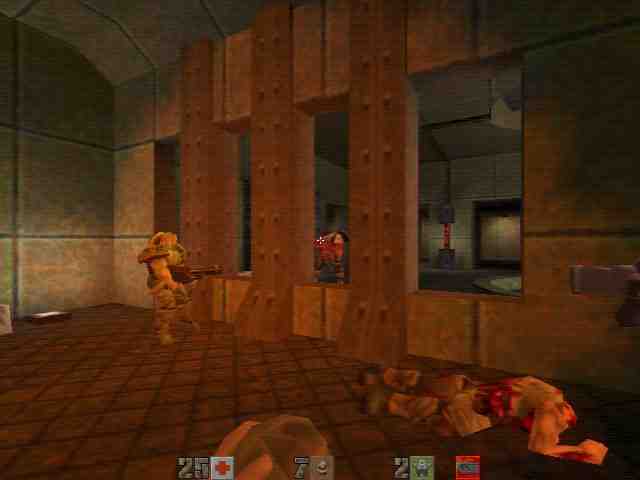 Games this Month Starcraft (Version 1.06) It's not about fun anymore it's about winning the map. I stopped playing online and it has dulled my edge a lot. I get into the stupid habit of sending just a few units against the computer. They're great for scouting, but against a base they'll just get killed, especially on a large map where the computer has a longer time to build forces. A mistake my friend made was just putting one worker per mineral patch. At the least you should have two. The amount of minerals you'll get will expand you fairly quick. Just remember to keep up with the supply depots, pylons, and Creep Colonies. Besides worring about resources, I got involved into a battle and I forget about the minerals I've collected. Sooner or later it's over a thousand. Better to keep that number close to zero and keep expanding, because that's what the computer is doing. Lastly always take the battle to them. You don't want a bunch of people blowing apart your base and your workers. If that happens, even if you beat them out, the damage has alreay been done. The longer you wait to attack or wall yourself in, the more enemies are gathering outside. Quake II (Version 3.20) The ammo is the same, so making your shots count is far more important than solo-play. It's just cool to see the other person walk around and fight. It gives the game a whole new edge. Most of the monsters in Quake II don't freak me out as bad as the damn dog does! First he's hard to hit on the ground, has a good amount of hitpoints, and that life sucking tongue-thing or whatever hurts. I sneaked up on one and just let loose with a gernade (see screenshot). That really felt good. Shame I play Quake as if I was solo, I like rushing in and blasting things while Otto's more cautious and like's to take snipper shots. Most of the time, I get in his line of fire and get killed. My fault, but it's part of the fun. | ||||||||